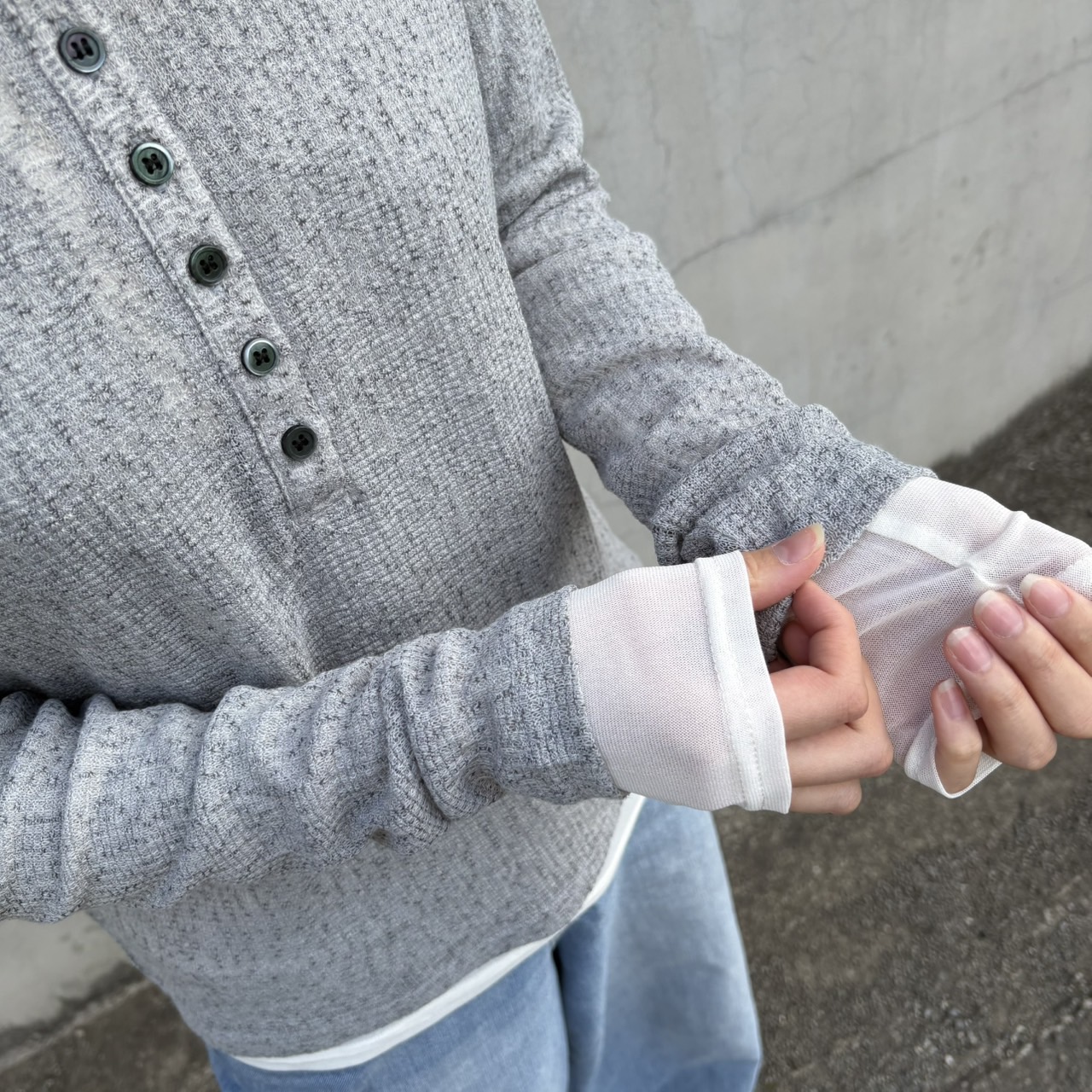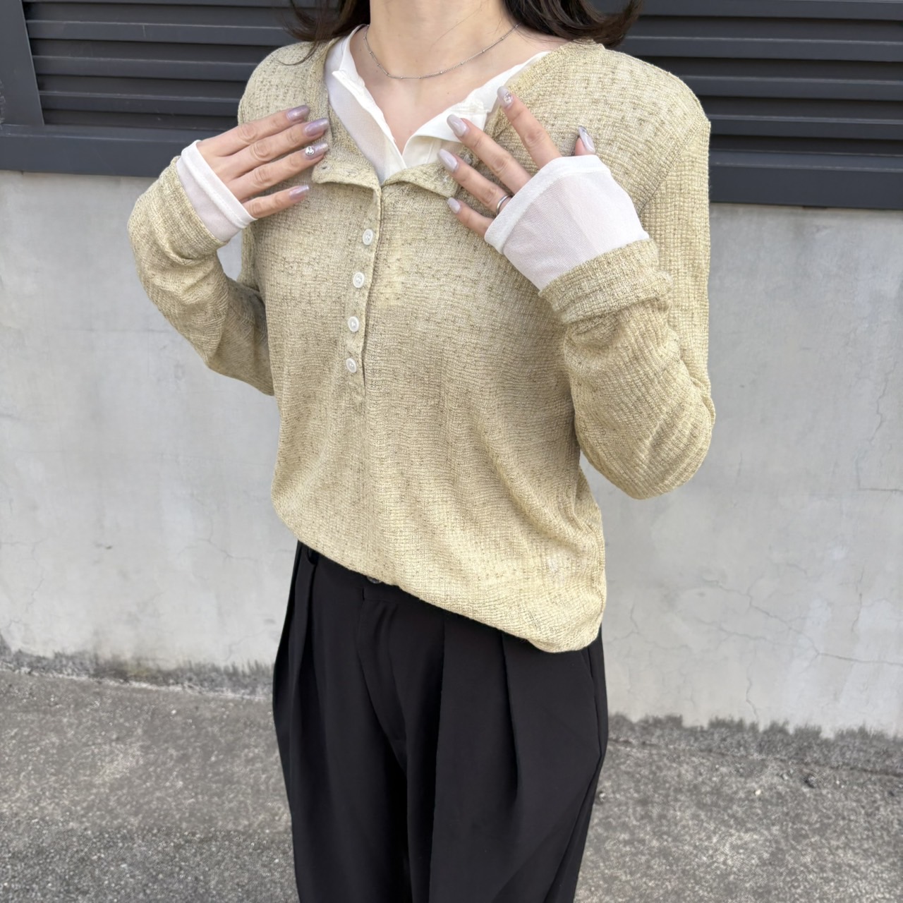 ☑︎ヘンリーネックシアーレイヤードトップス 柔らかくてフィット感のある生地、